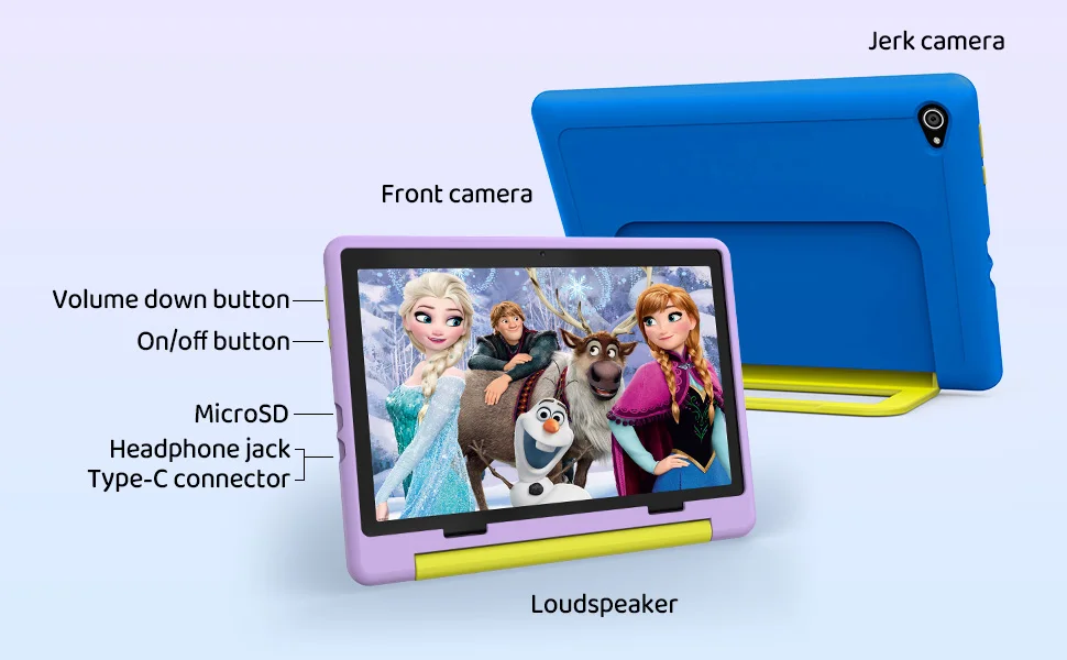 ?Tela grande de alta resolução?Uma tela grande de 10 polegadas com uma tela IPS de 1280 × 800 pode fornecer uma experiência visual clara e delicada para as crianças.A tela grande pode apresentar detalhes mais ricos e reduzir a sensação de fadiga ocular assistindo vídeos educativos, lendo e-books e jogando jogos de quebra-cabeça;O amplo recurso de ângulo de visão da tela IPS também permite que as crianças mantenham um bom efeito visual enquanto assistam de diferentes ângulos.